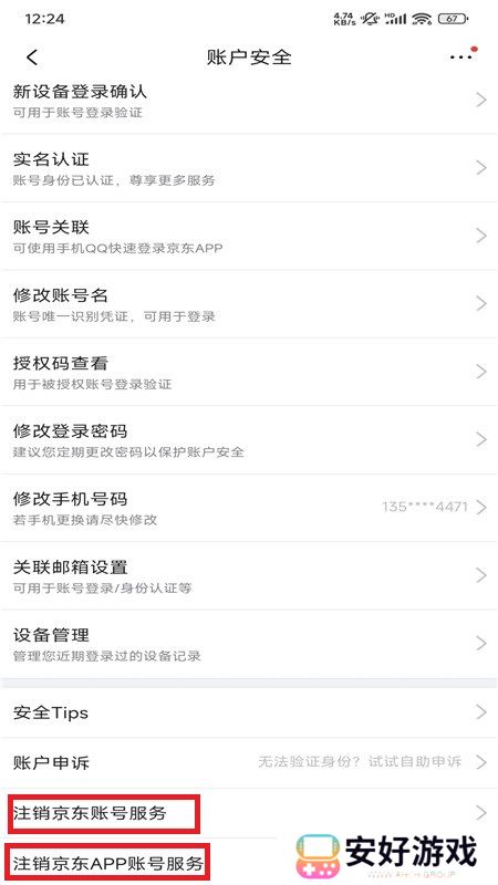 4、滑动到最底下,找到“注销京东账号服务、“注销京东APP账号服务”这两项,点击后按照屏幕上的步骤进行操作即可!