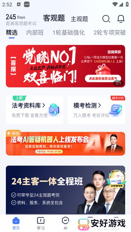 觉晓法考app2025官方最新版为广**学考试备考生准备了海量优质的学习课程以及考试题库,优秀名师在线为你辅导,帮助你快速攻克学习难关,海量精品学习资料都可免费使用。