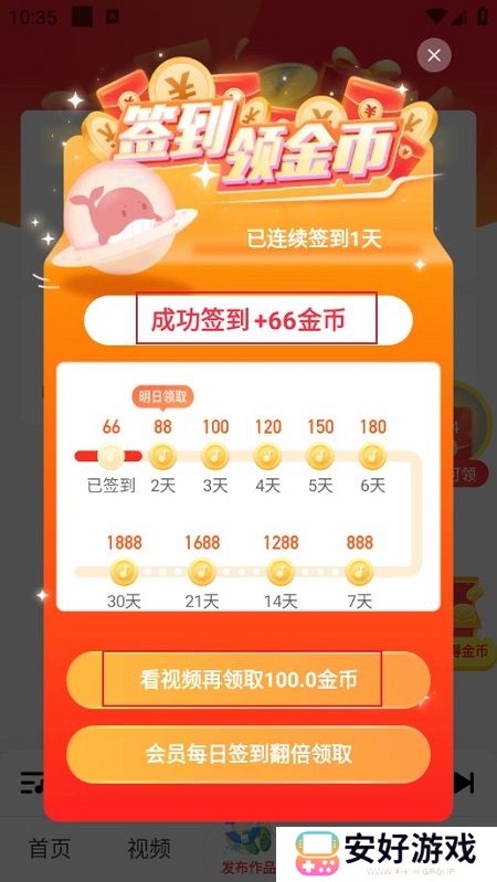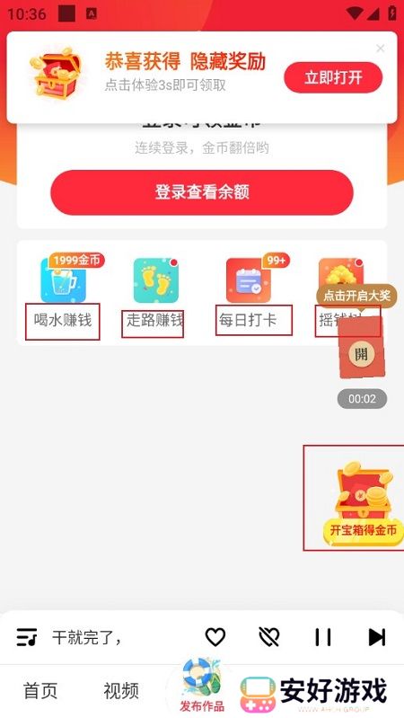 3、在页面的最右边会有一个小红包图标,图标上会有进度条,当进度条满了以后,点击即可领取金币;