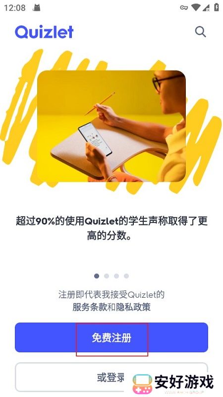 quizlet怎么注册1、打开Quizlet进入软件主界面,点击“免费注册”按钮;