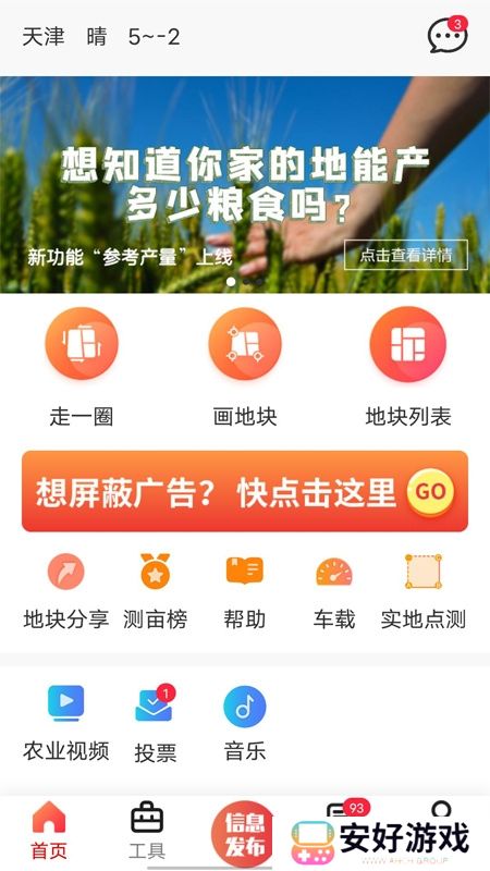 2.首页-服务工具-GPS测亩仪,点击开始,沿着需要测量的土地