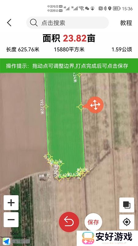 6.测量过程中,地图实时标注您的行走路径,显示您测量的土地范围