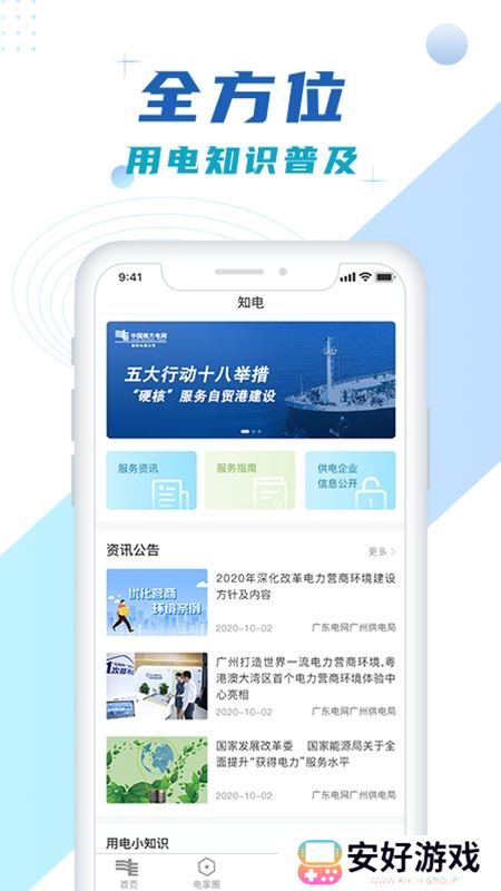 南网在线包括电费查缴、用电报装、业务变更、停电信息查询等,以及丰富贴心的增值服务。