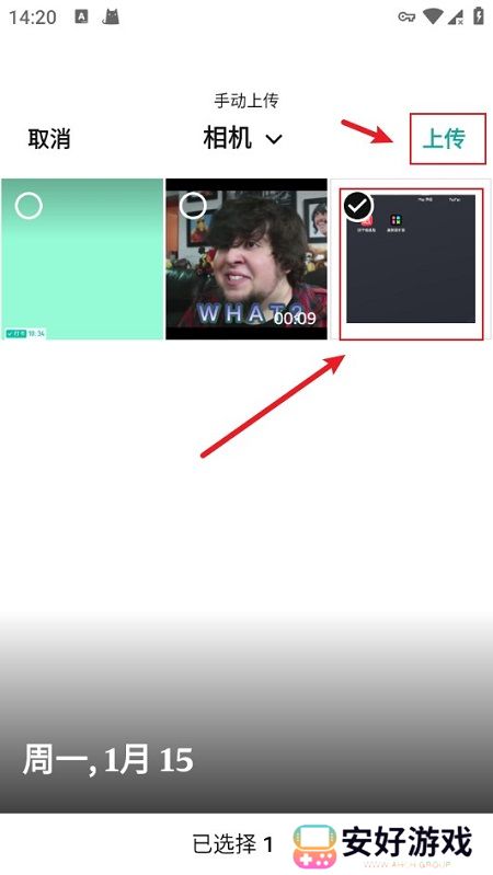 5、然后选择自己要上传的照片,点击右上角的上传按钮;