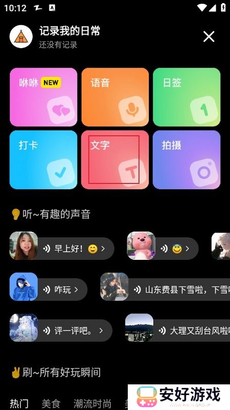 3.在记录我的日常页面,你可以进行语音、日签、打卡、文字、拍摄等功能,这里我选择文字做演示;