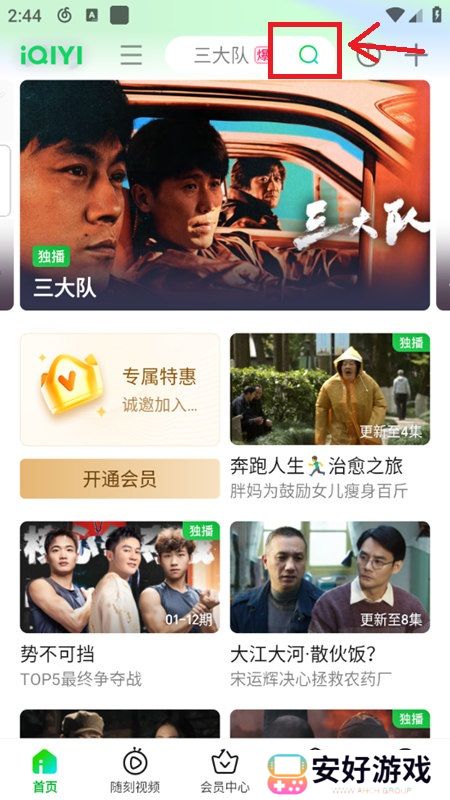 爱奇艺车机版变成全屏教程:1、打开app进入主页,点击上方搜索框