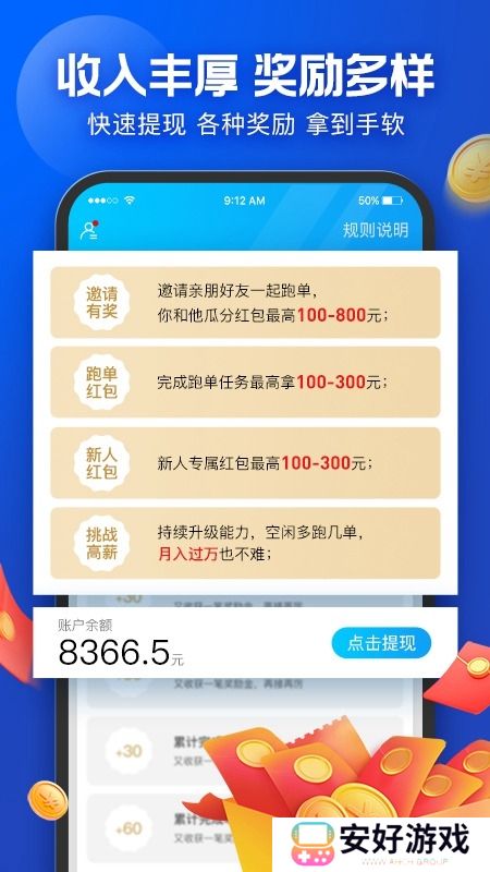 2、海量订单多劳多得,单多价高,多跑多赚上不封顶,快乐赚钱