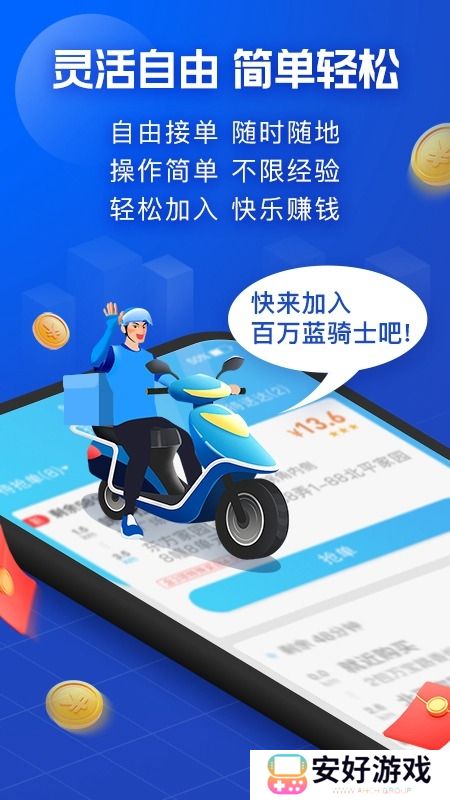 0门槛,人人都可注册成为骑手,注册即可开始配送,随时随地赚钱,自由掌握时间!