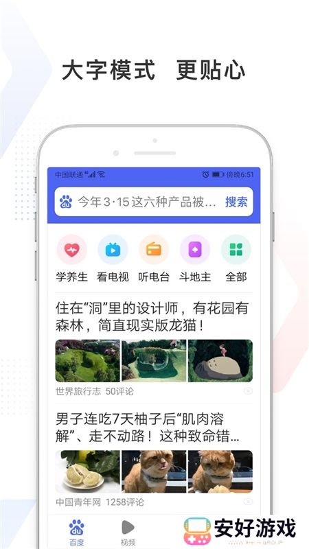 首页底部快速进入视频频道,海量明星娱乐、搞笑段子、经典剧集视频,还能拍小视频记录身边新鲜事,简单操作能拍又能看。