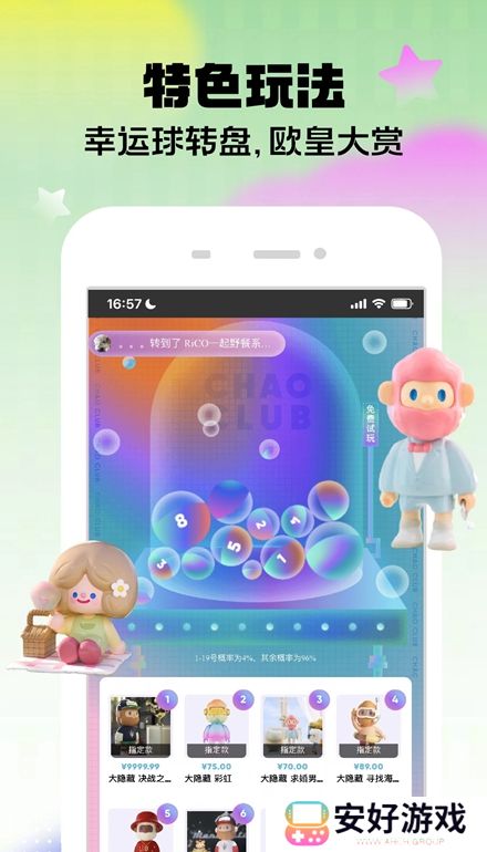 1、丰富的盲盒选择:线上盲盒机APP汇集了各类热门盲盒,包括限量版、合作款、明星款等,满足潮玩家对不同商品的追求。