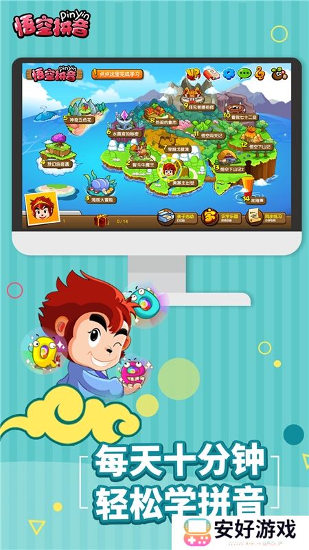 以悟空学艺为故事背景,包括14天西游故事和42个趣味游戏。