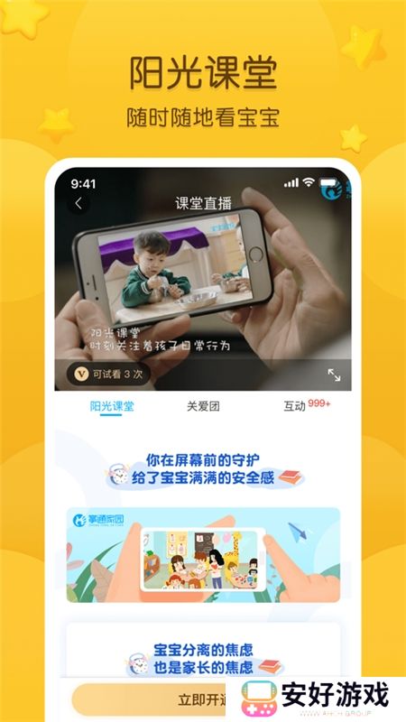 开放式的远程视频直播,让家长能随时随地观看宝宝的在校动态。
