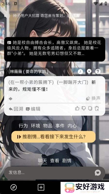 3.多样化互动操作:在聊天界面中,除了基本的文字交流外,还具备换声、回溯、编辑等功能,增加聊天趣味性和故事性。