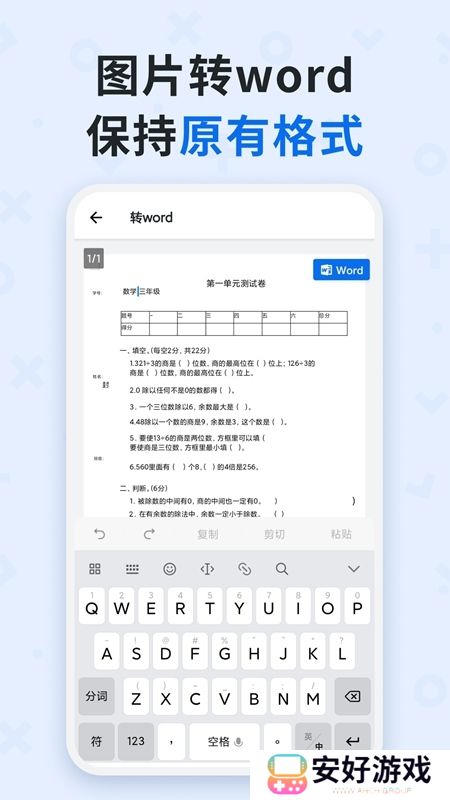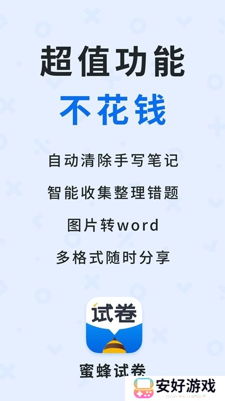 蜜蜂试卷最新版本安卓版是一款非常好用的错题整理神器app,智能识别试卷,一键清除手写笔迹,自动还原成新的空白卷,还可以生成打印图片,支持多种格式分享,非常的方便,有需要的朋友赶快下载吧!