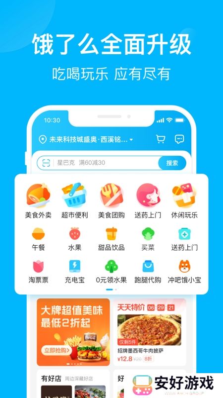 网罗周边各类外卖,中餐、西餐、快餐、简餐、火锅、烧烤、烘焙、汉堡、早餐、下午茶、夜宵、甜点、甜品、水果、鲜花、果蔬、生鲜、蛋糕、寿司、咖啡、超市购物……各类特价优惠套餐、满减折扣优惠、立减优惠套餐,便捷生活,一手掌握,尽在饿了么!