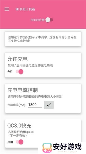 手动调节限制电流,控制充电电池温度阈值,手动控制是否启动QC3.0快充技术。