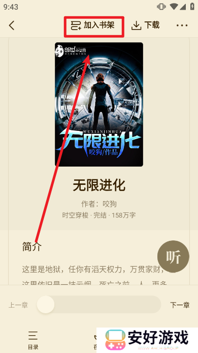 3、最后在喜欢的小说上方,点击【加入书架】。