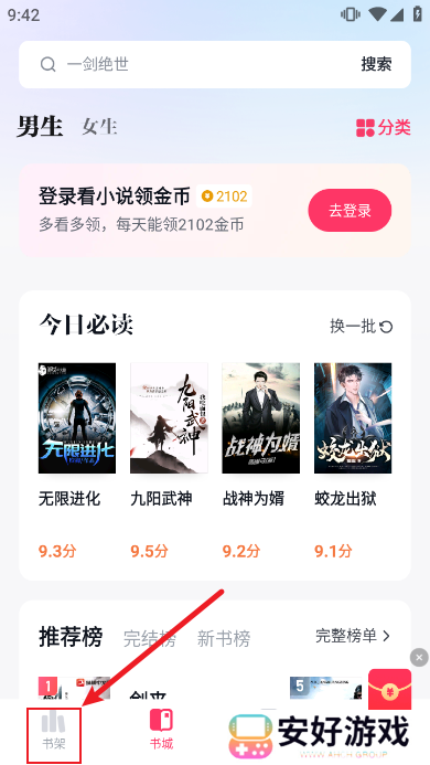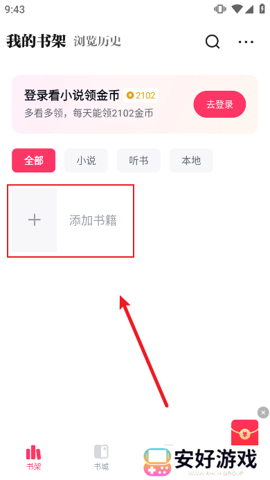 快手免费小说如何添加书籍?1、首先在本站下载app,打开后进入首页,点击底部的书架。