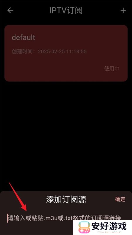 4、在添加订阅源输入或粘贴订阅源链接,点击确定按钮即可。