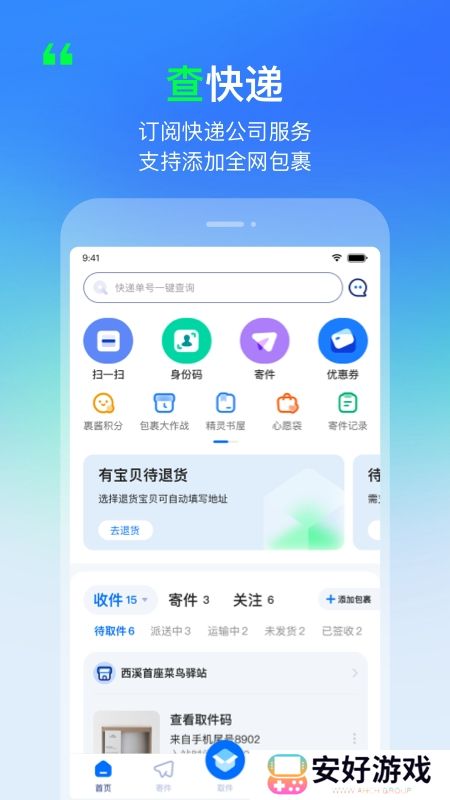 阿里巴巴官方出品,专业好用的查快递、寄快递工具。菜鸟裹裹是一款专业提供查快递、寄快递的应用软件,主要适用于全网包裹查询,支持淘宝、天猫、京东、苏宁等网购包裹自动跟踪,同时覆盖国内外140多家快递公司。核心支持:国内外快递运单查询、线上预约寄快递、快递自动跟踪、菜鸟驿站代收服务、快递进度实时提醒等。