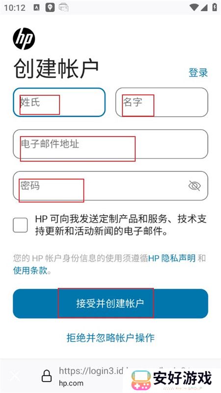 3.输入您的姓氏、名字、电子邮件地址,并选择一个密码。