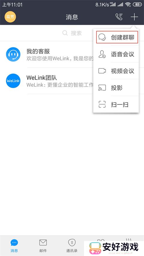 WeLink如何发起会议?第一步:点击左下角“消息”-右上角“创建群聊”。