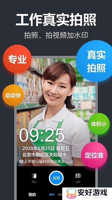 工作考勤打卡、外勤拍照打卡、旅行记录、美食拍照、微商水印等