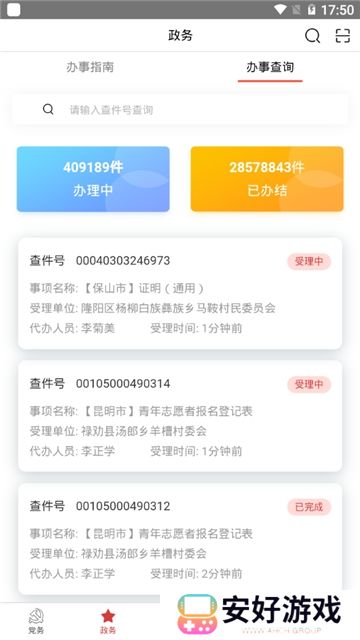 【政务】民情速递、政务动态、办事指南、办事查询;