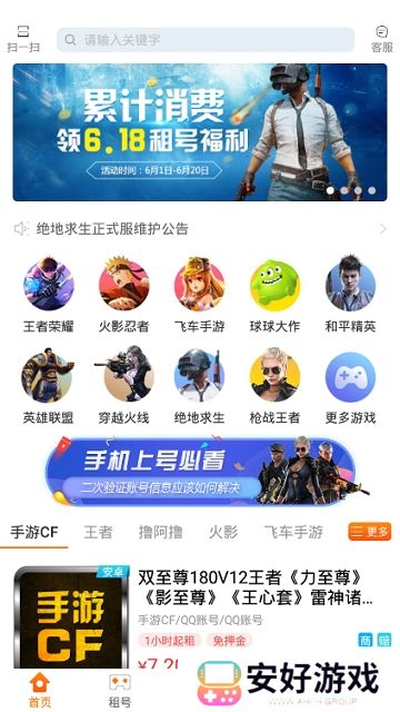 应用特色人手必备,优质游戏账号,租号助手