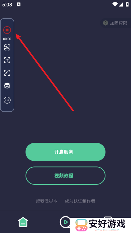 3、开启成功后,会出现一个悬浮窗,点击圆形按钮就可开启录制。