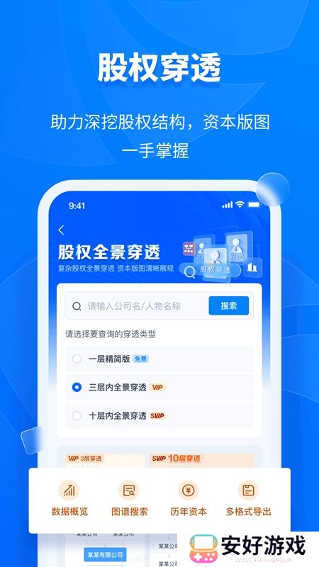 3.**度查询:支持企业基本信息、股东信息、对外投资、经营状况、司法风险等多个方面的查询。
