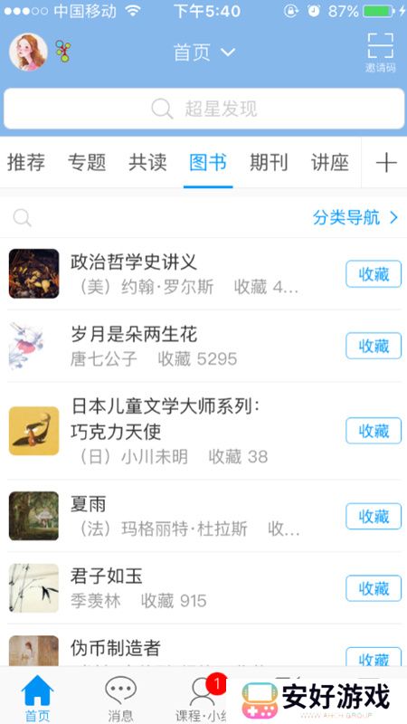 学习通怎么查找图书教程:1、打开学习通app,进入首页