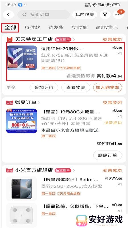 3.在个人中心页面找到我的订单,这里会展示你买到的所有商品订单;