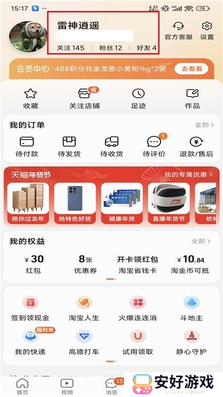 2.在首页上方点击【我的淘宝】,进入个人中心页面。