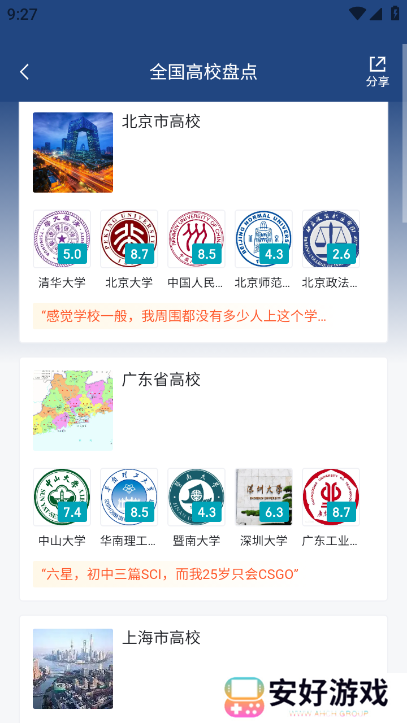 2、学生可以对学校进行评分,分享自己的校园体验和生活感悟。