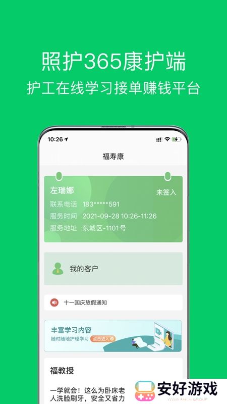 4.帮助用户能够在线上学习专业的养护知识,并根据个人专业进行护理接单。
