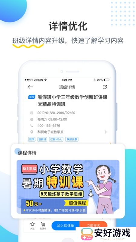 乐学培优官方客户端app是一款注重线上和线下教育的优质培训app,首页全新改版,在这里你可以快速选择你自己心仪的课程,高效率提升自己的学习能力 ,随时掌握课程进度,教你快速了解学习内容,欢迎下载体验吧!